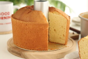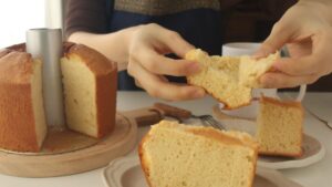 米粉で作るノンオイルシフォンケーキは、しっとりとした口あたりと、ほのかなもちっと感がたまらないおいしさです。