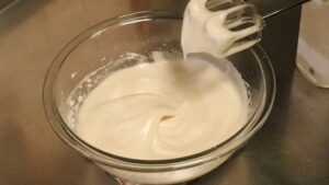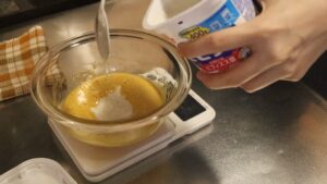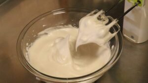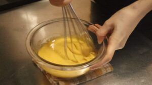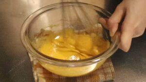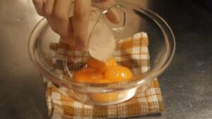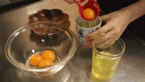・卵は卵黄と卵白に分けて、卵白は冷蔵庫でよーく冷やしておきます。