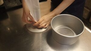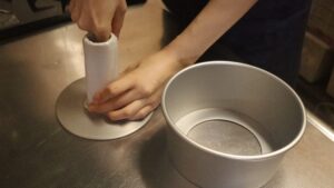 筒部分にオーブンシートを巻き付けておくと、型外しがラクなのでやっていますが、この作業はやってもやらなくても、どちらでも大丈夫です(^^)