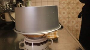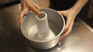 ・シフォン型の筒部分にオーブンシートを巻き付けてます。