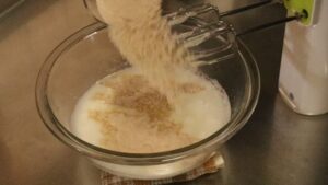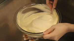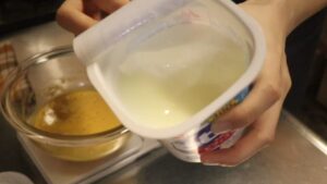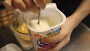 このとき、ヨーグルトにホエーが浮いている場合はしっかり混ぜ合わせてから、生地に加えてくださいね♪