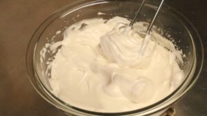 ハンドミキサーの羽根にメレンゲが詰まっているので、このまま羽根で混ぜてもらっても大丈夫です。