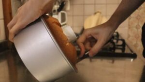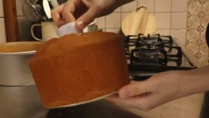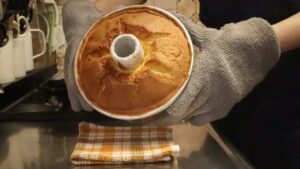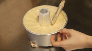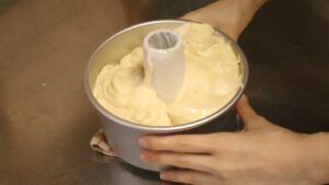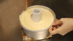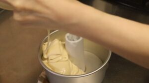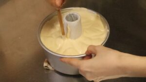 シフォンをお皿にのせて、筒部分をゆっくりと抜きます。