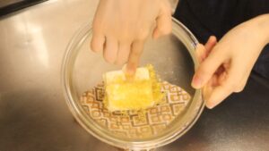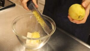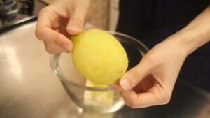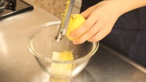 レモンの白い部分は苦味があるので、黄色い表面だけを薄くすりおろすのがポイントです。