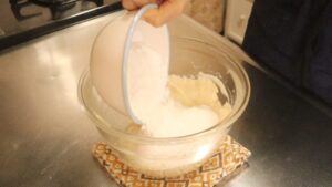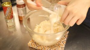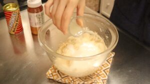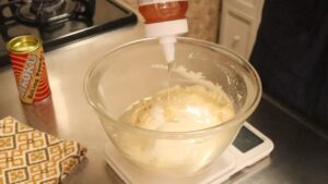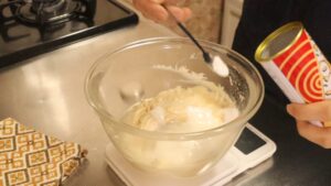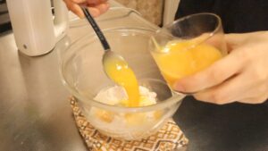 ヨーグルト、レモン果汁、はちみつ、ベーキングパウダーを加えます。