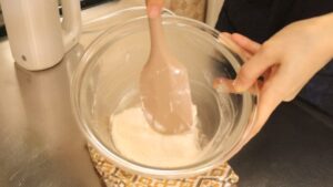 粉っぽさがなくなるまで、ゴムベラで混ぜ合わせます。