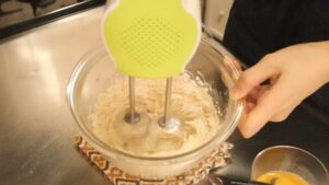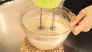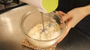 ハンドミキサーのスイッチをいれて、均一になるまで混ぜます。