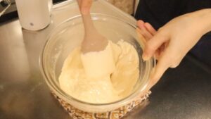 ゴムベラで全体を馴染ませるように混ぜ合わせます。