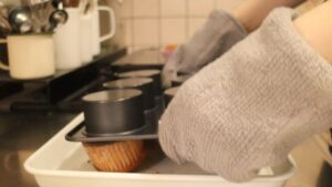ひっくり返しても外れないときは、竹串で型の内側を一周そっとこそげると外れます。